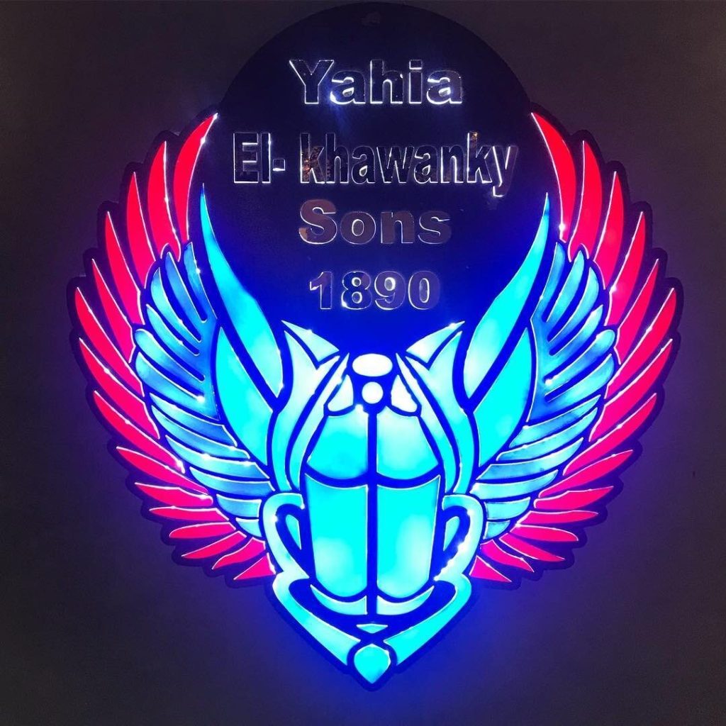 -YehiaElKhawanky — качественные кальяны, часто встречающиеся в кафе Египта и ОАЭ. О них ниже. Логотип — крылатый скарабей, удерживающий над собой передними лапками круг.